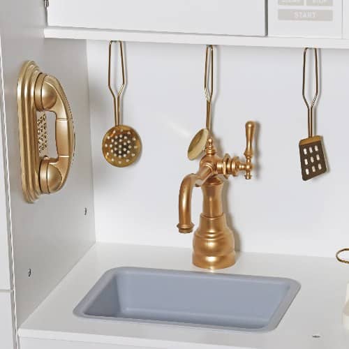 מטבח אלקטרוני דאלאס מעץ לילדים - לבן וזהב