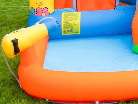 עם בריכת שכשוך, מגלשת מים, תותח מים ואזור קפיצה מוגן ברשת בטיחות – זו החוויה המושלמת לילדים שאוהבים להשתולל ולהתקרר במים!