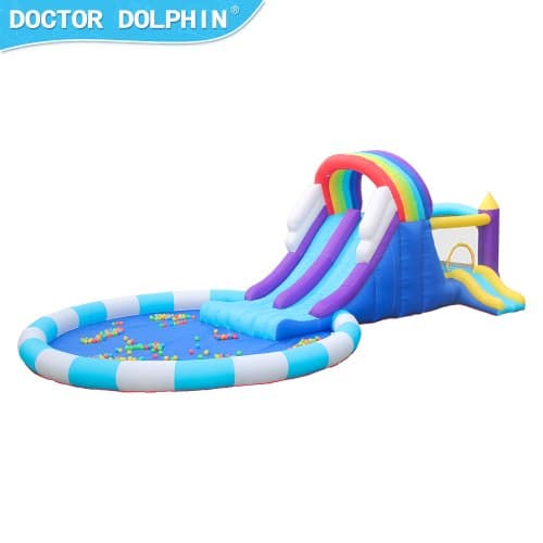 🎉 מתקן מתנפח ענק – קשת בענן עם שתי מגלשות מים | דגם W63102 | Doctor Dolphin | קפיץ קפוץ 🌈