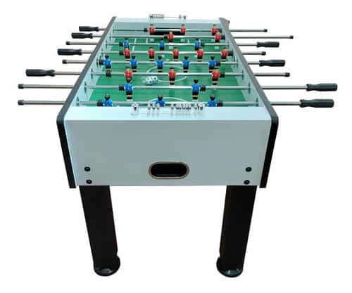 שולחן כדורגל איכותי עם עיצוב מודרני, עשוי מעץ עם ציפוי מלמין דקורטיבי, וכולל משטח עץ שכבות בעובי 10 מ"מ. המוטות עשויים ניקל, מאסיביים וחזקים במיוחד, מה שמבטיח עמידות לאורך זמן ומשחק יציב.