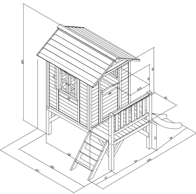בית עץ לילדים בסגנון כפרי כולל מגלש ומרפסת (188X139X101 סמ) מק"ט 2005XL