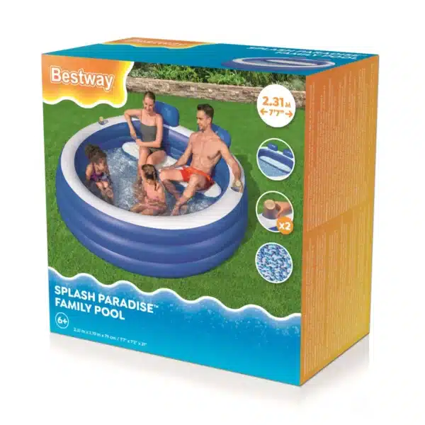 בריכה משפחתית עגולה עם ספסל + 2 מחזיקי כוסות ומשענת ראש | 2.31X2.19X79 ס"מ | מקט BESTWAY | 54422