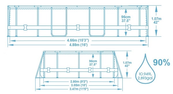 - נפח מים: 10,949 ליטר / 2,893 גלון (90%)