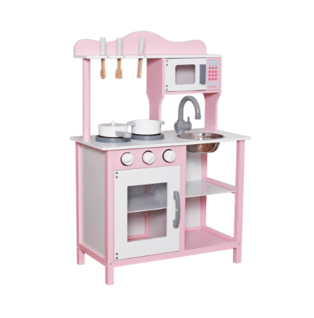 עם מטבח עץ איכותי בצבע ורוד מתוק, הילדים נהנים ממשחק מלא דמיון, סדר וביטחון עצמי, תוך כדי פיתוח מוטוריקה וכישורי חיים ראשונים.
