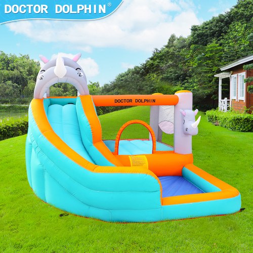 מתקן הקפיצה המתנפח "הקרנפים" (מק"ט W73009) מבית Doctor Dolphin הוא פתרון מושלם לילדים בגילאי 3–8, המשלב הנאה, פעילות גופנית ובטיחות. המתקן מתאים לשימוש יבש בלבד, אידיאלי לחצרות פרטיות או גינות.